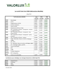 Tarifs Point Vert 2026 (déclaration détaillée)